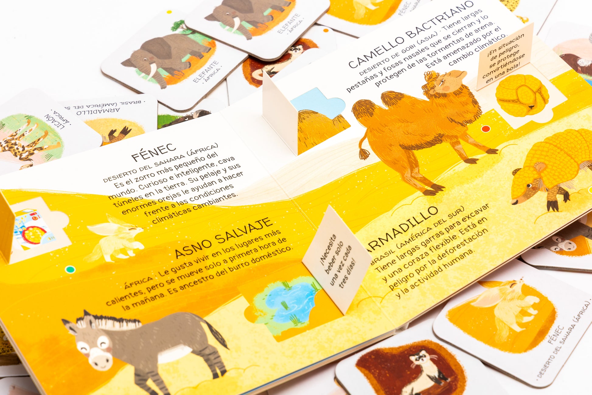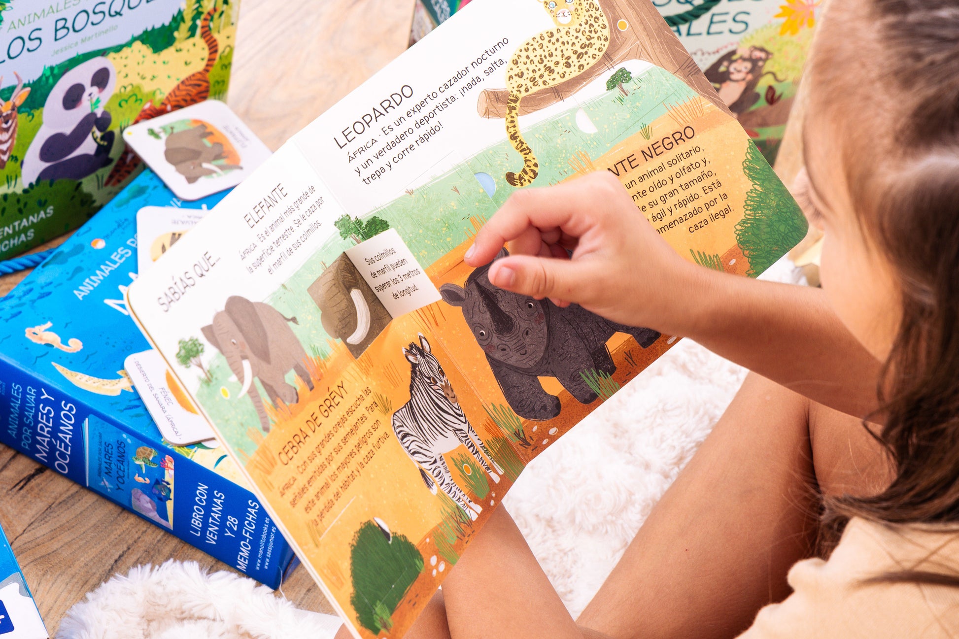 Levanta las ventanitas del interior del libro y descubre un montón de datos interesantes sobre los animales de los bosques templados, el entorno en el que viven y por qué están en peligro de extinción. Juega después con las fichas y entrena tu memoria