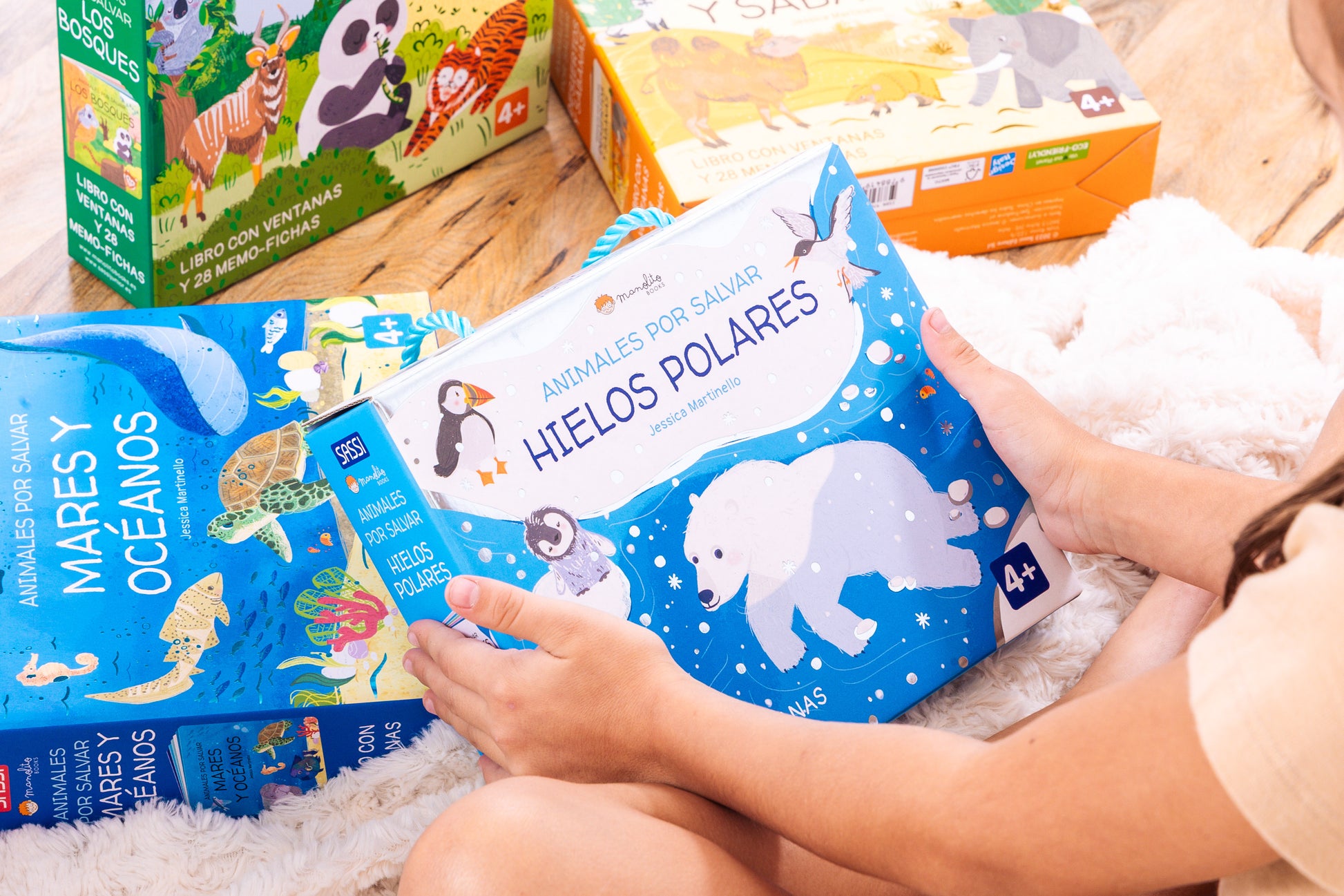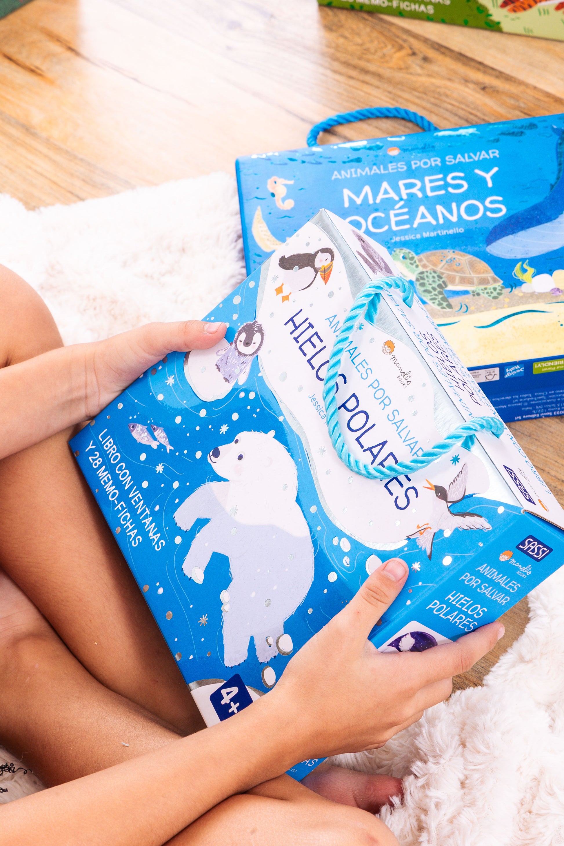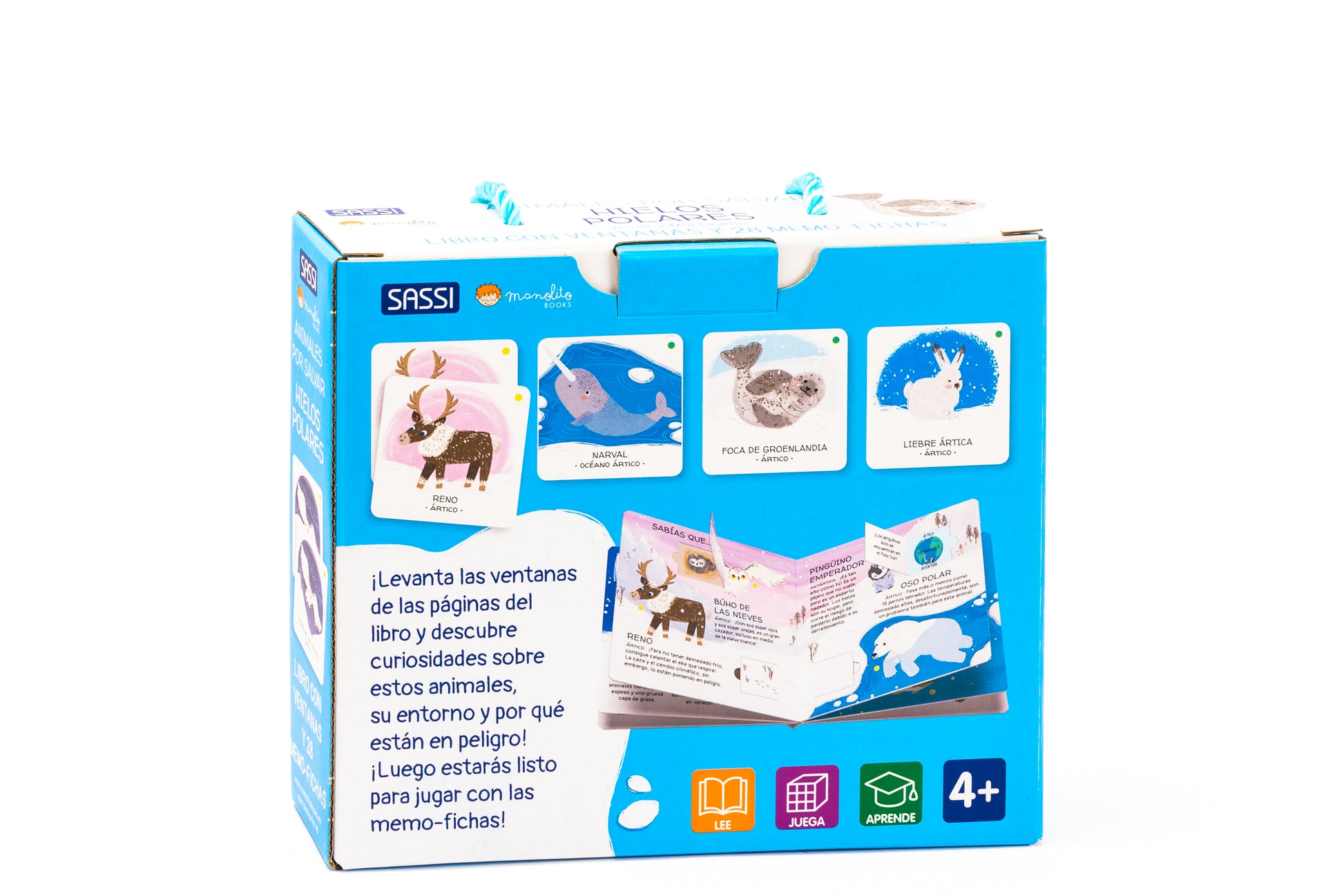 Levanta las ventanitas del interior del libro y descubre un montón de datos interesantes sobre los animales de los Polos, el entorno en el que viven y por qué están en peligro de extinción. Juega después con las fichas y entrena tu memoria. Un libro-