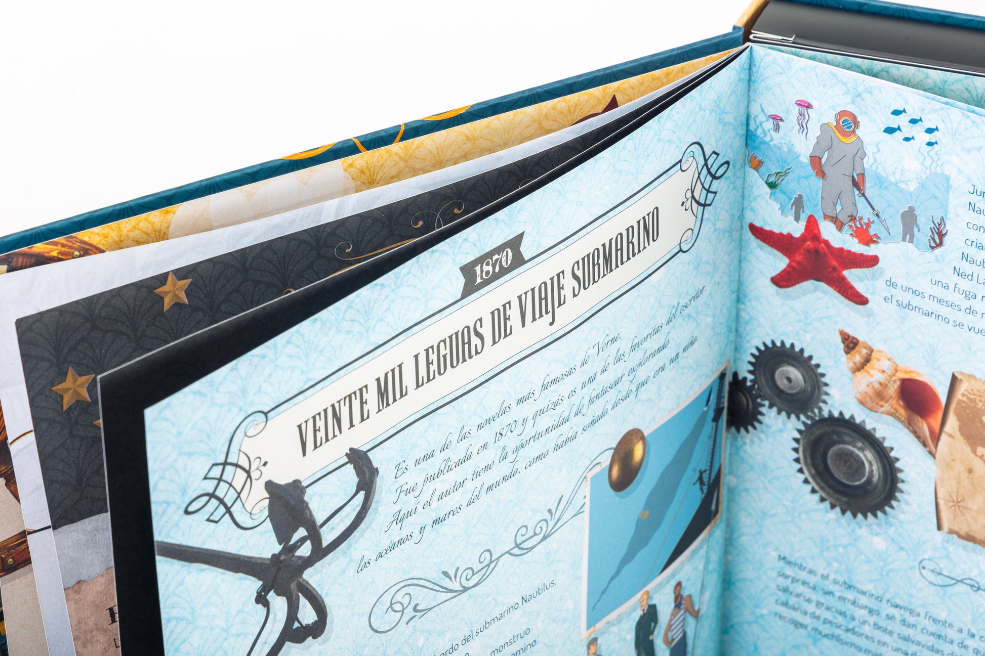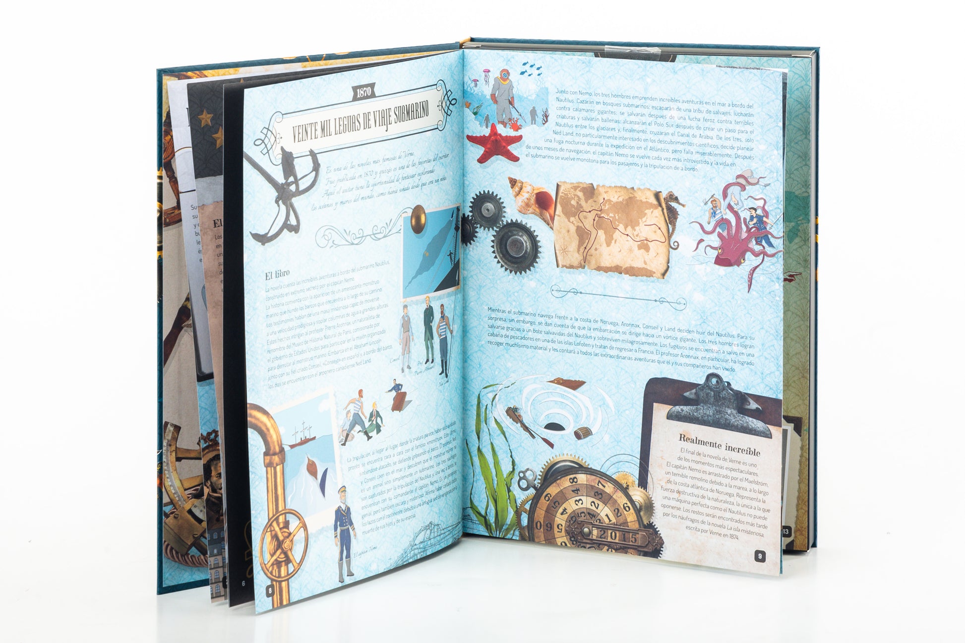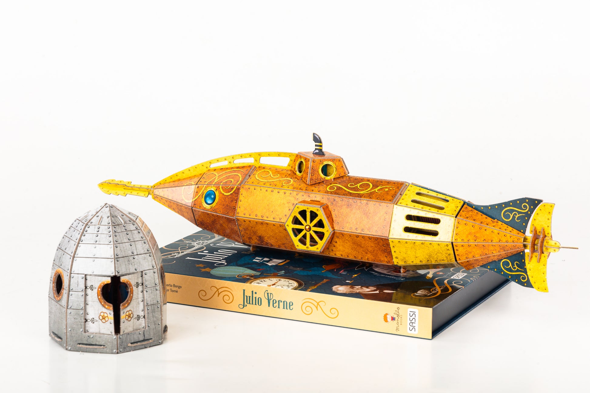Julio Verne es uno de los escritores más queridos de la historia y sus novelas se siguen leyendo y traduciendo en todo el mundo. Se le considera el inventor de la ciencia ficción moderna y con su imaginación anticipó muchos grandes inventos que llegaron décadas después. Julio Verne dedicó su vida a plasmar en novelas las aventuras que soñaba, permitiendo a los lectores de todos los tiempos viajar con la imaginación gracias a sus numerosos libros. Lee el libro, descubre muchos datos interesantes y diviértete construyendo maquetas en miniatura del Proyectil Lunar y el Nautilus.